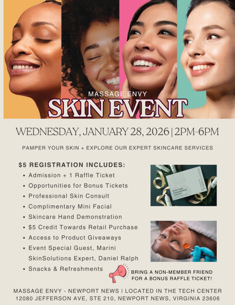 You’re invited to the Massage Envy Skin Event at Marketplace at Tech Center. Explore their expert skincare services.